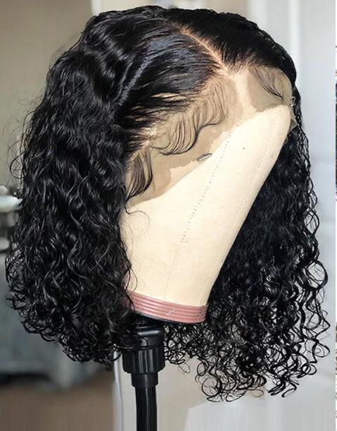 13x4 Bob Water Wave Lace Front Human Hair Wigs Pre Plucked With Baby H